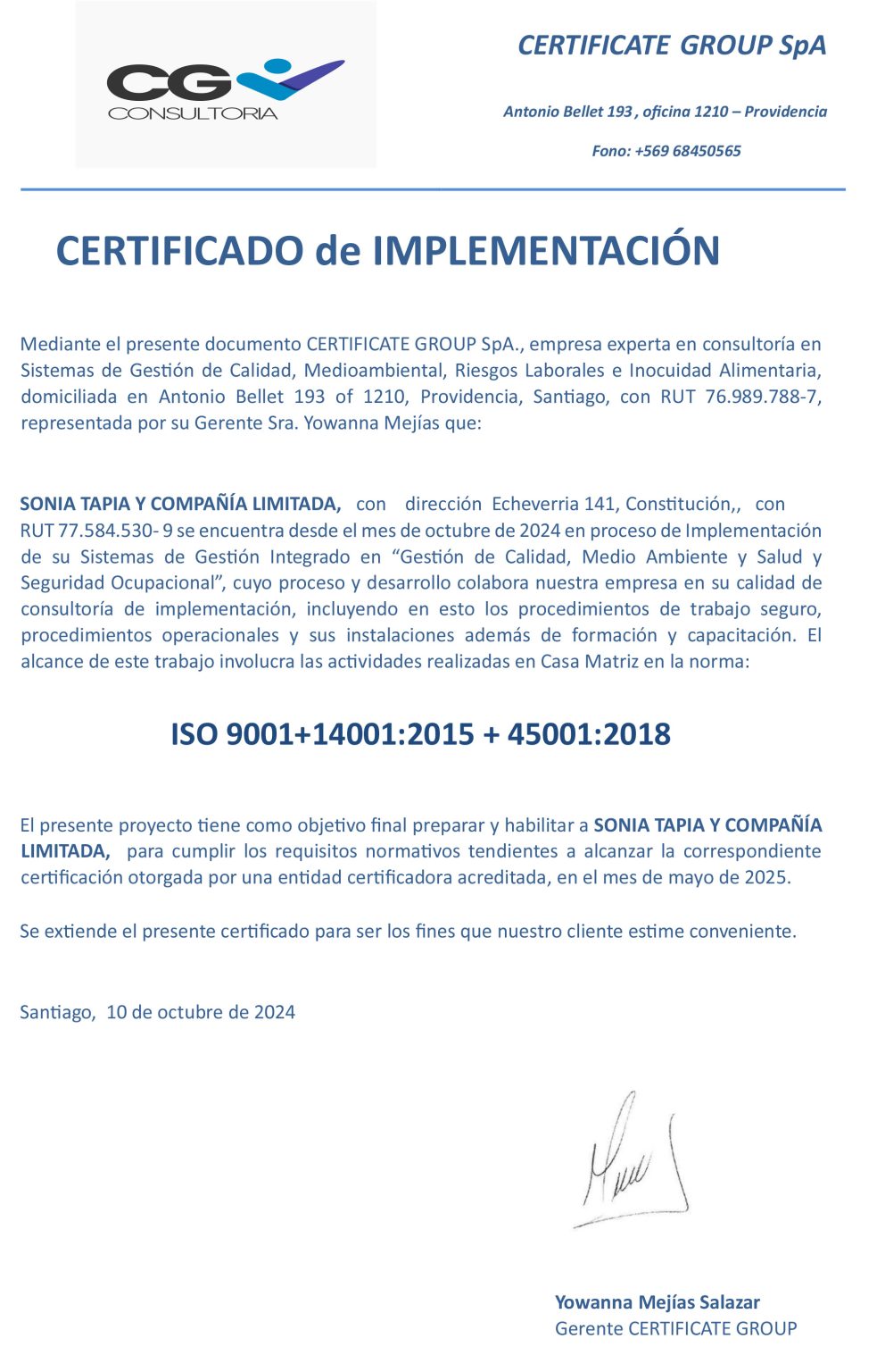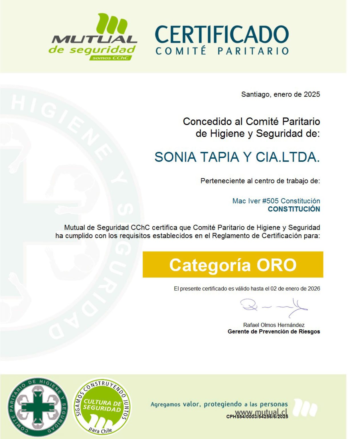 Nuestra empresa Sonia Tapia y Cía. Ltda.(TyM Ltda.), se formó en abril del año 2001, en la ciudad de Constitución, con el objetivo de prestar servicios a Celulosa Arauco y Constitución S.A. y empresas locales relacionadas principalmente a la industria forestal.